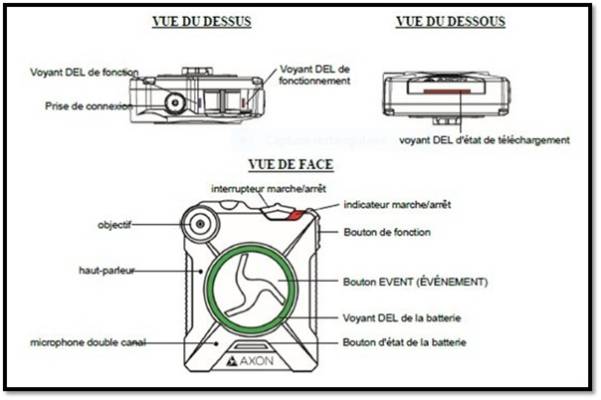 Un signal visuel s’allume au niveau de la caméra lorsque les agents procèdent à l’enregistrement d’une intervention (clignotement rouge).